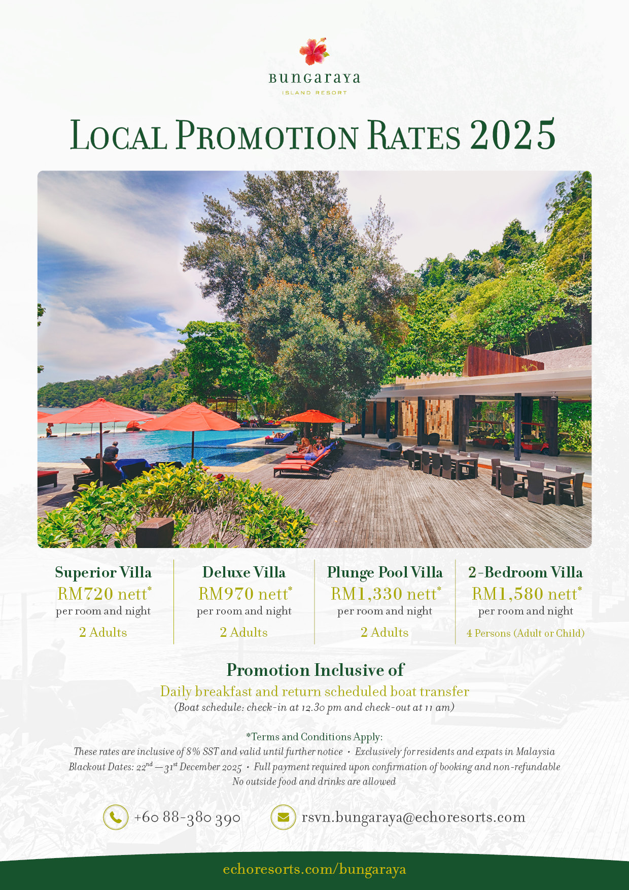 Interested? Please book now with our Bungaraya Island Resort reservation team directly to enjoy this offer!