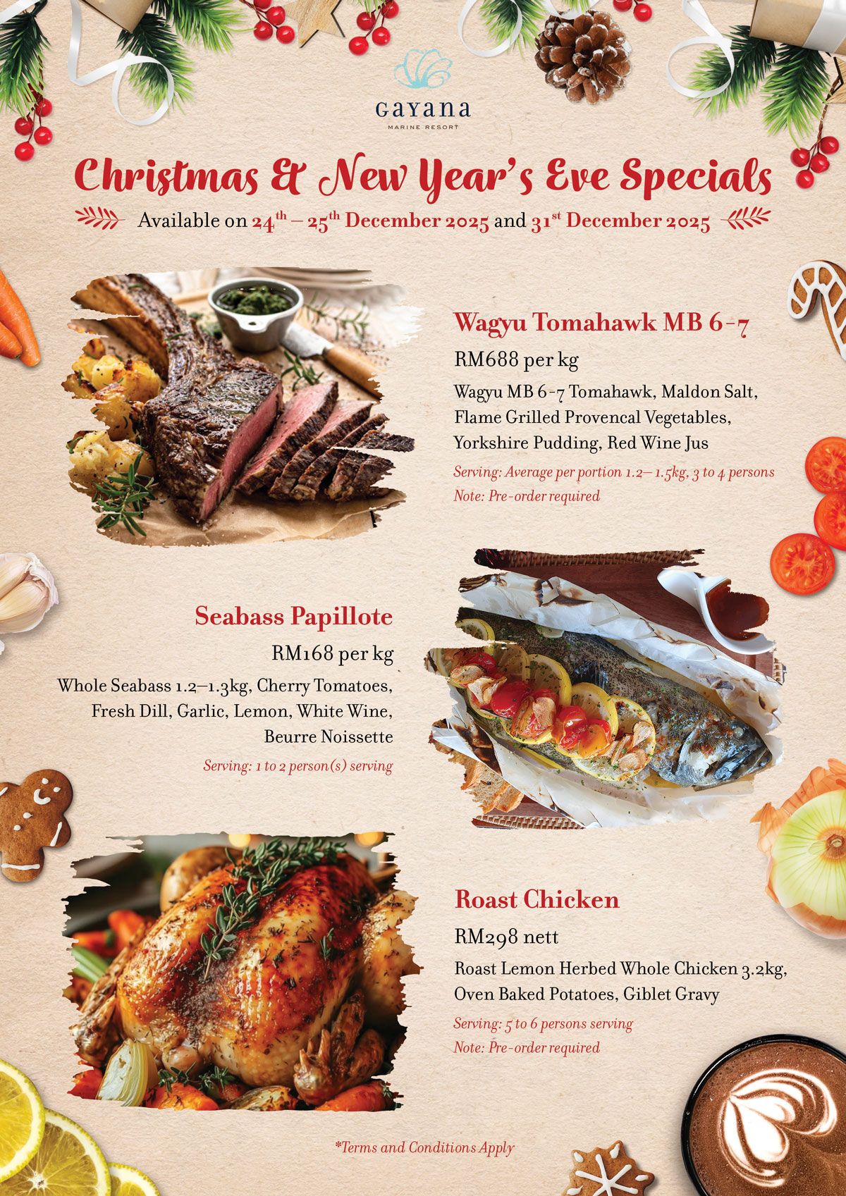 Our Christmas and New Year's Eve Specials will be available on 24th – 25th December 2025 and 31st December 2025.